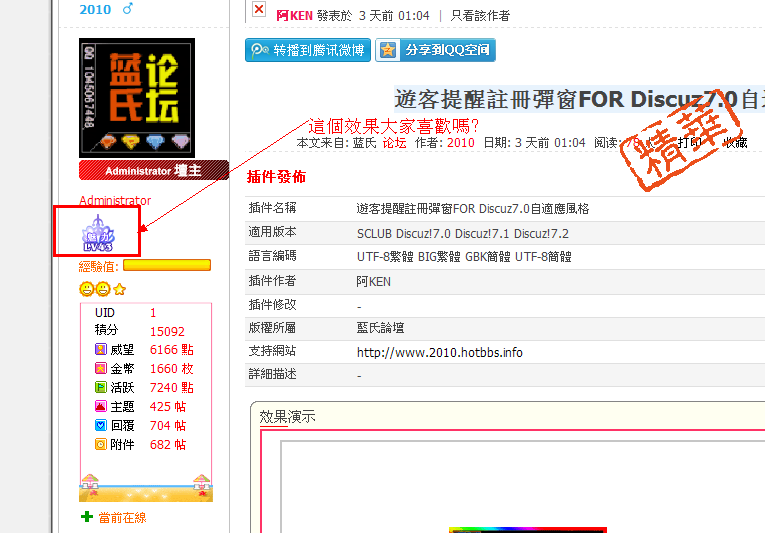 【玩转7.2系列】给论坛会员添加一个魅力值【已升级7.2】