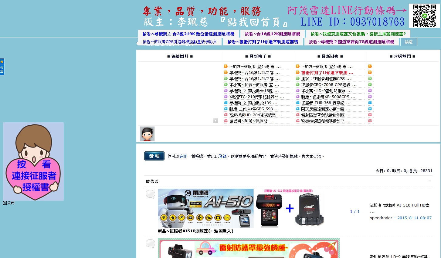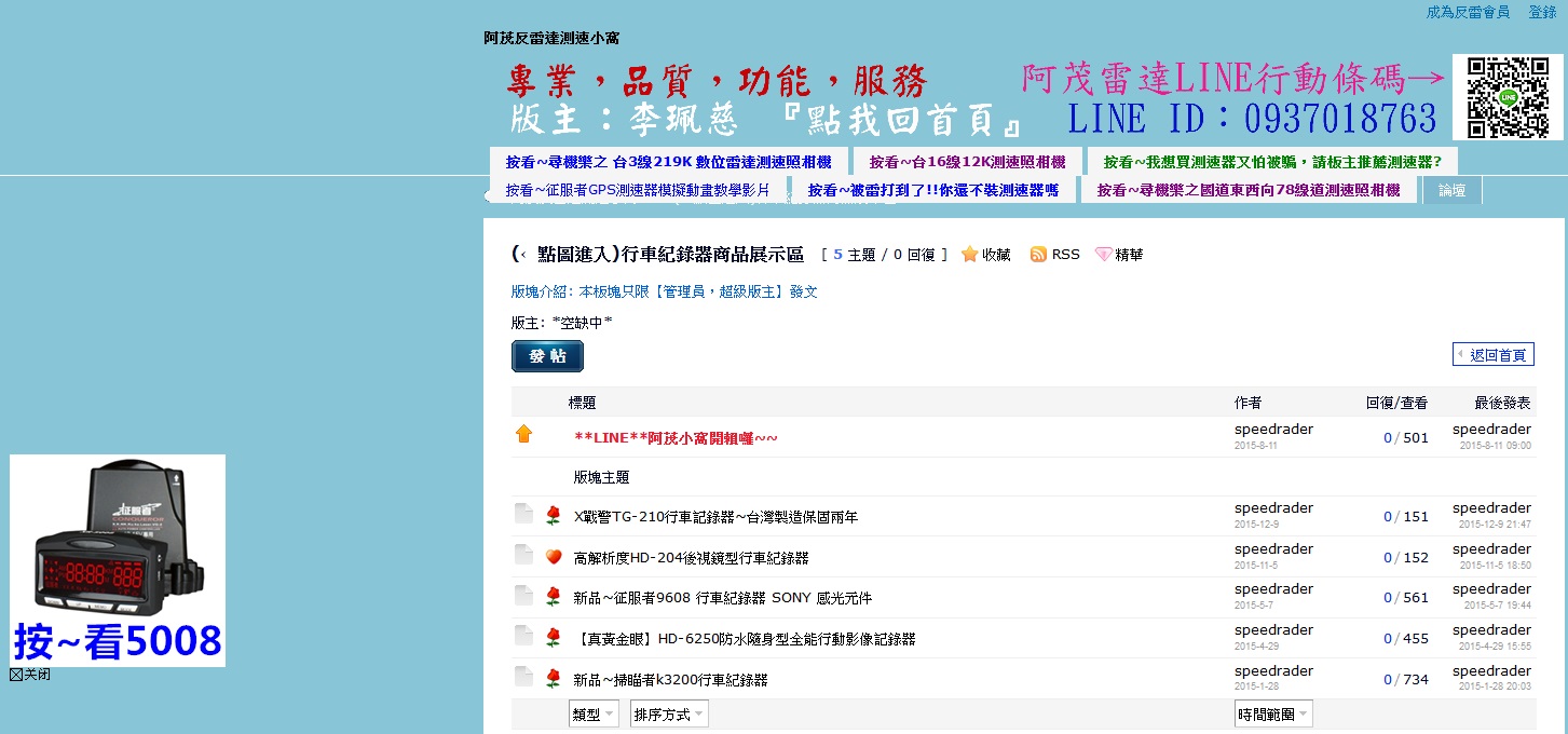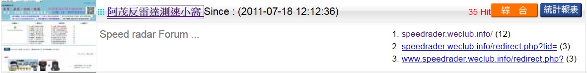 | 1.論壇名稱: 阿茂反雷達測速小窩 Since : (2015-06-03 15:24:02) |
