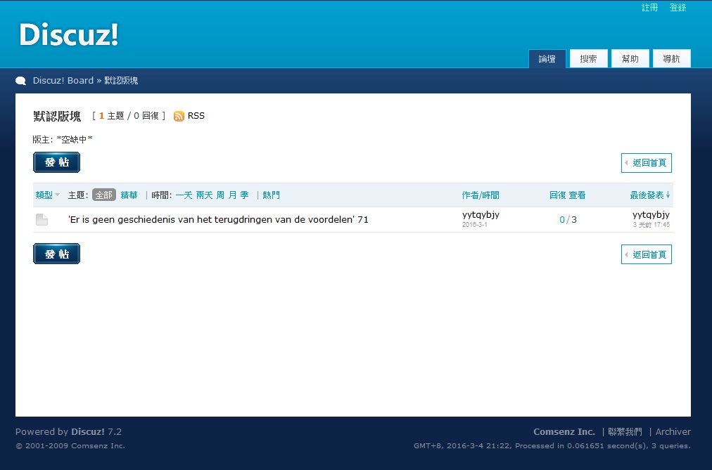 | 歡迎光臨 SCLUB免費論壇申請-使用者論壇 (http://www.orzweb.net/discuz/) | Powered by Discuz! 7.2 |