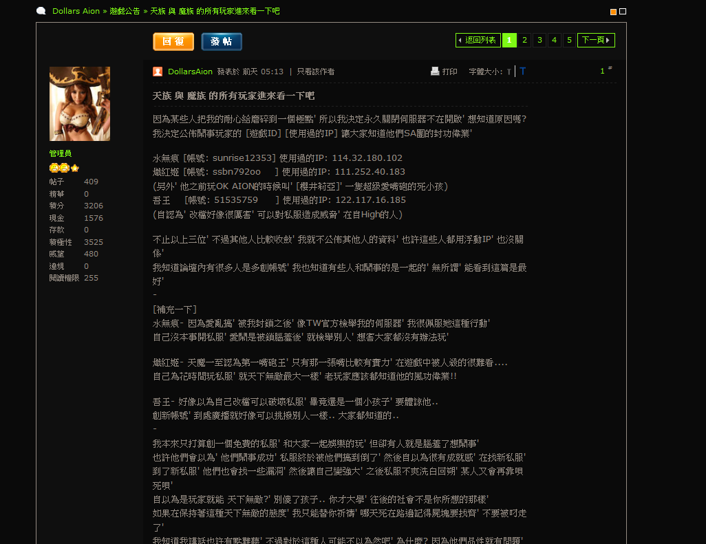這是該論壇管理員再另一個網站散佈會員ip位置的圖
